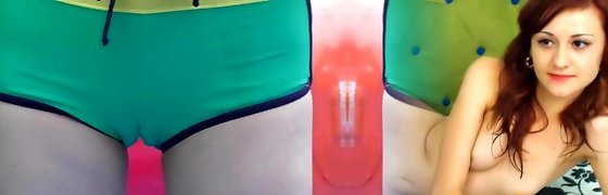 She lays in her tight red panties on her pointy pussy and I wring her furry Cameltoe until she takes her panties off