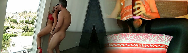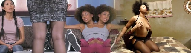 DEVIANTE - Big Tits Ebony and Asian Thai college roommates play video games and discover friends male masturbating plaything
