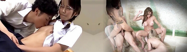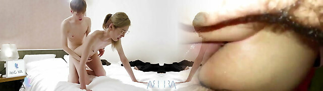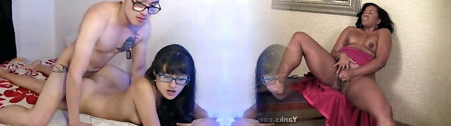 Meaty-titted Asian girl in glasses prefers wild shagging with her BF