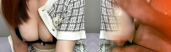 Staring at big Japanese tits and pussy excites the guy
