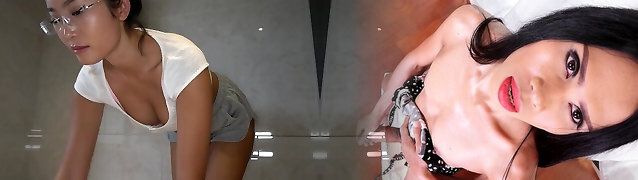 Nerdy stunner from the Far East wants her mouth to be filled with cum
