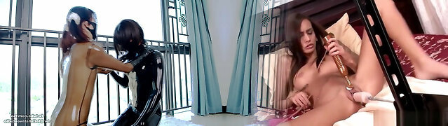 Fejira com Latex-dressed maids wear face masks to orgasm