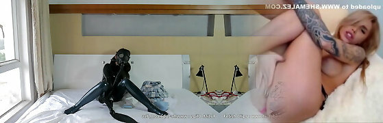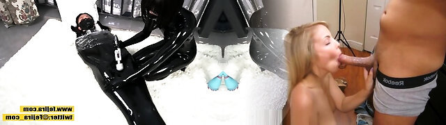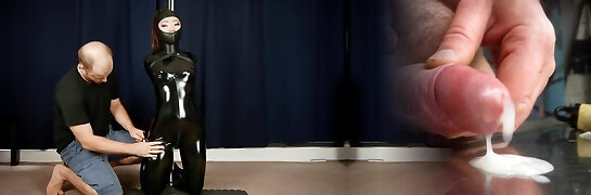 Latex vacuum cage bondage and BP femdom