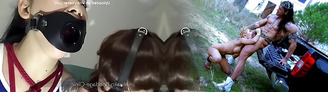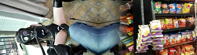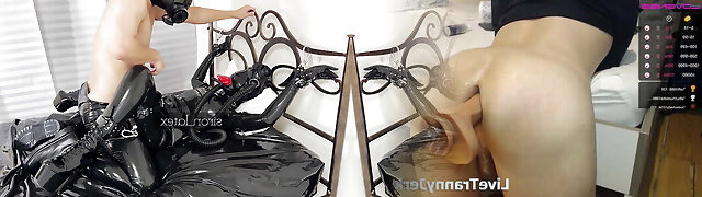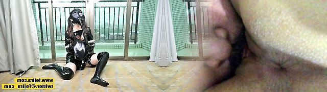 BDSM asian sex slave in latex gets vulva tantalized for piss