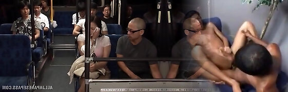 Two Guys Fucking a Busty Japanese Girl's Large Boobs in the Public Bus