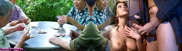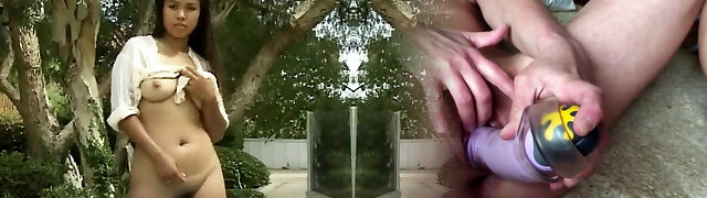 Busty asian girl touches herself in the woods AI generated