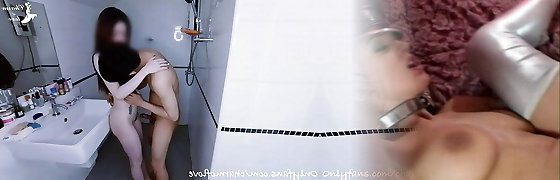 MILF marvelous naked damsel takes bath and uses shower and shop Masturbation wet pussy in shower and strong orgasm MILF