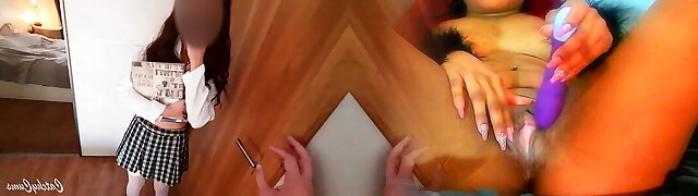 Lesbian girls Scissoring in university dorm in school uniform sex doll girl humping labia teenies