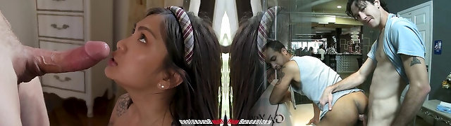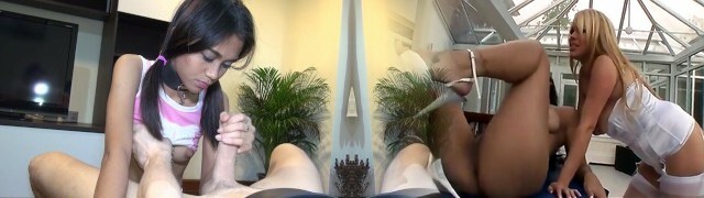 Revamped version of Japanese Rei Mizuna performing deep throat on her counterpart in a lewd manner.