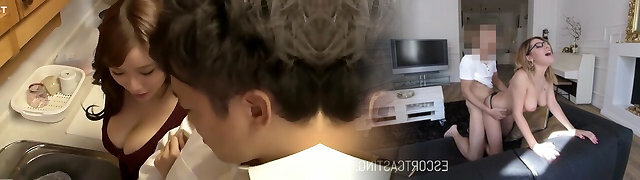 Warm Chinese married nymph wakes up her husband with her mouth sucking his dick and makes him come in his mouth