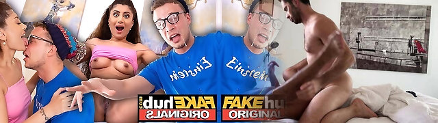 FAKEhub - Hot Indian British model slurps the cum of dorks glasses after he cums on his own face