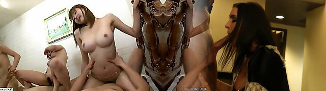 Sex with Asian busty girl in nightclub bathroom on New Year's Eve - Busty Lady Fuck on New Year's and jizm in her throat