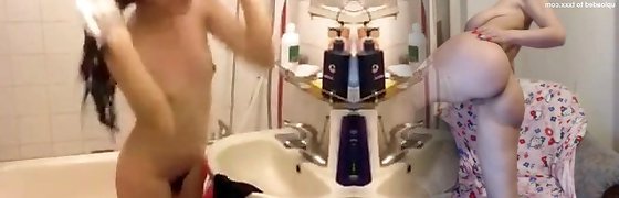 Two skinny Japanese teens taking a bubble bathtub together and making out
