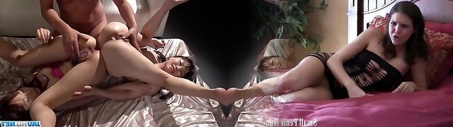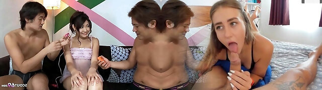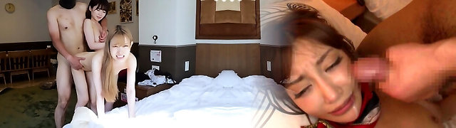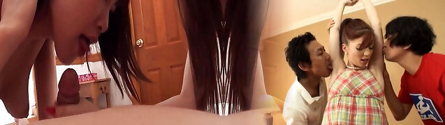 Slim Diminutive Japanese Cuties Surrender Their Pussies And Asses To a Horny Guy In Gonzo FFM Three-some
