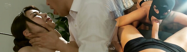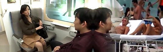 Mature Japanese housewife with gigantic tits gets her hairy cootchie eaten and fucked by 2 experienced lovers